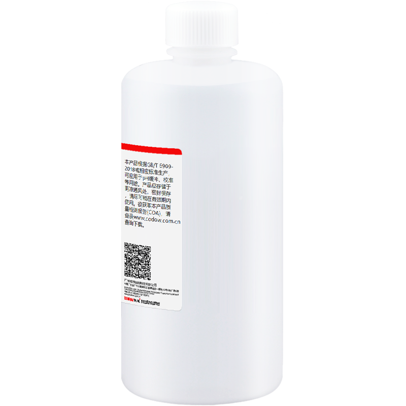 本产品根据GB/T 6909-2018或相应标准生产,可应用于pH缓冲、校准等用途。产品应存储于阴凉通风处,密封保存,请尽可能在有效期内使用。欲获取本产品质量检测报告(COA),请登录www.codow.com.cn查询下载。