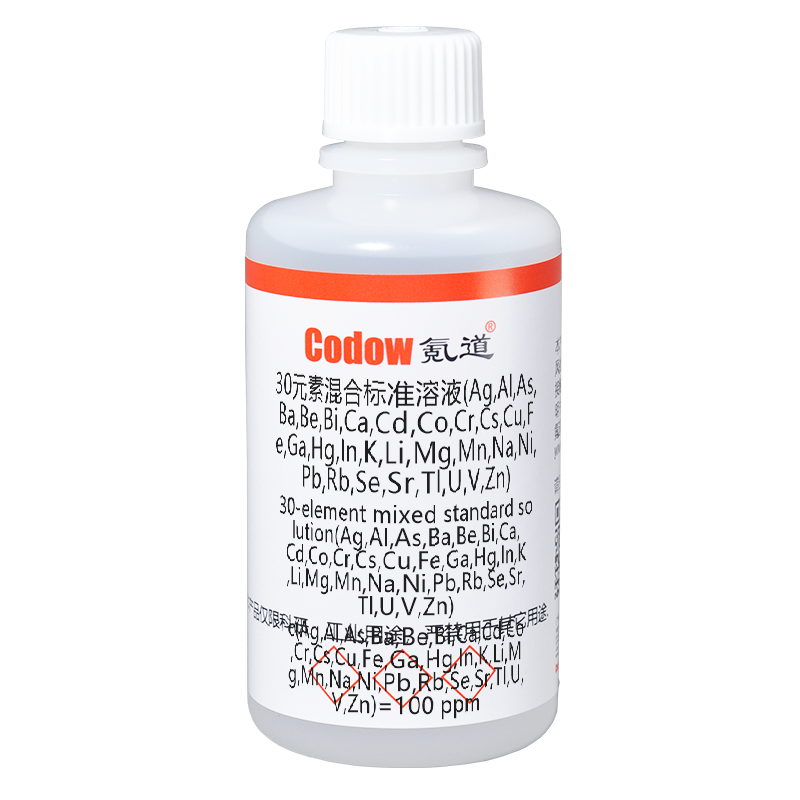 30元素混合标准溶液(Ag,Al,As,Ba,Be,Bi,Ca,Cd,Co,Cr,Cs,Cu,Fe,Ga,Hg,In,K,Li,Mg,Mn,Na,Ni,Pb,Rb,Se,Sr,Tl,U,V,Zn)