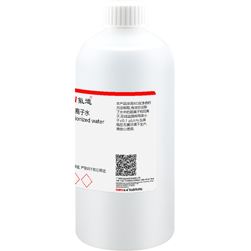 本产品采用RO反渗透的方法制取,有效的去除了水中的阴离子和阳离子,在线监测电导率小于≤0.1 μS/cm,包装瓶在无菌环境下生产,请放心使用.